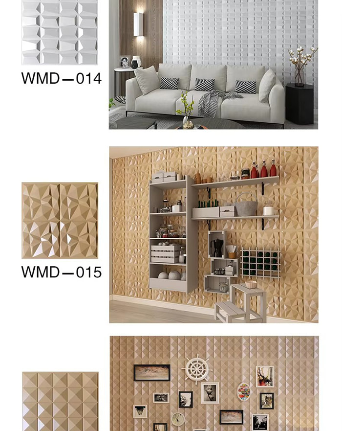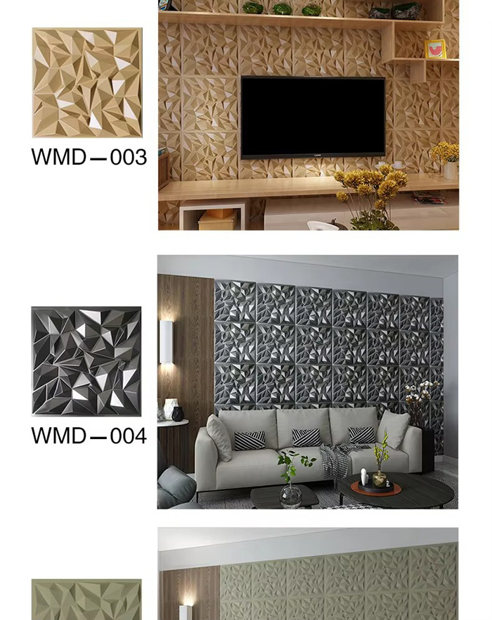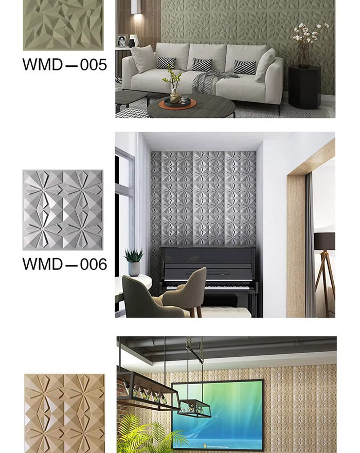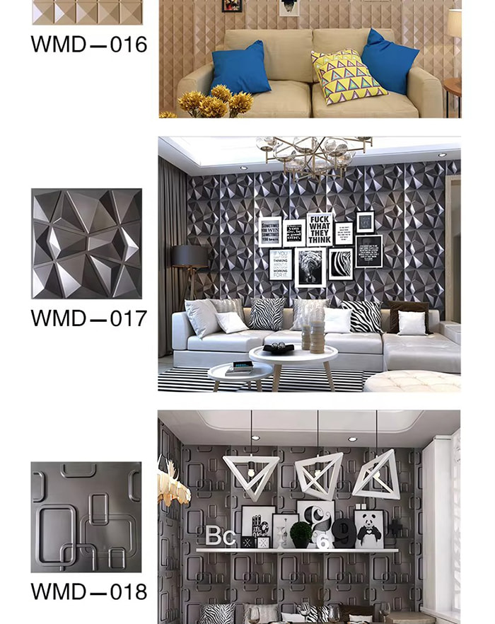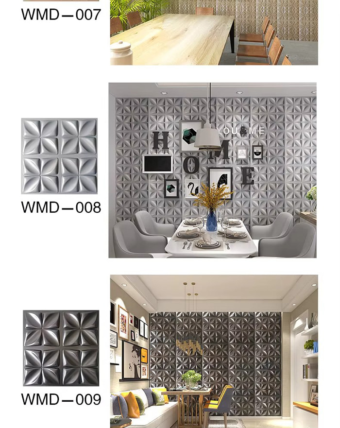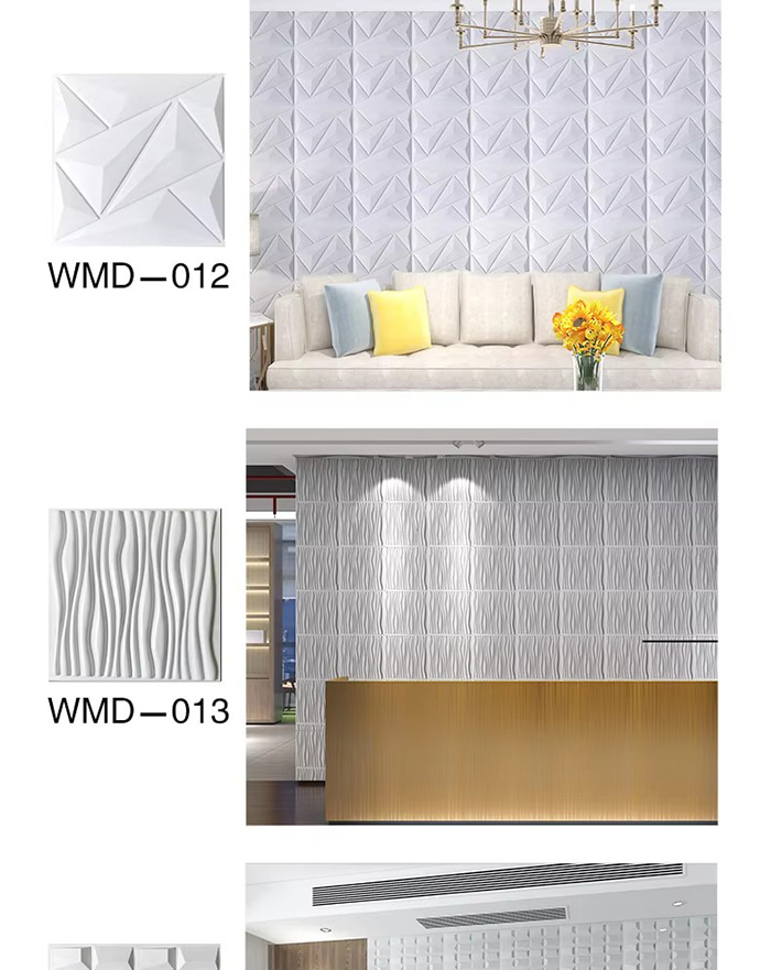 Panourile de perete 3D sunt un nou tip de material decorativ. Prin presarea la cald a matriței, gravarea și frezarea sau printarea CNC, se formează modele tridimensionale pe suprafața panourilor. Materialele sale de bază includ PVC, placă de densitate, aliaj de aluminiu, fibră de bambus etc. Luând PVC ca exemplu, materialele compozite cu moleculare înaltă sunt extrudate la temperatură ridicată, iar modelele de suprafață sunt presate cu matrițe de oțel de precizie, cu precizia minimă concavă și convexă atingând 0,1 mm. Panourile de perete 3D au un efect vizual tridimensional. Prin principiul refracției luminii și umbrelor, planul 2D este transformat într-un efect vizual 3D cu un sentiment de profunzime, iar stratificarea vizuală este mărită de peste 3 ori sub aceeași zonă.