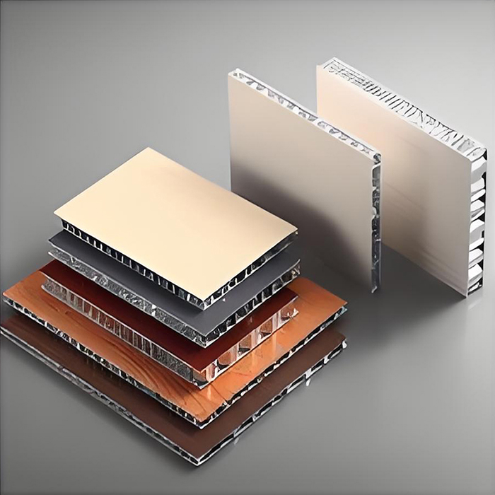Panoul de perete din fagure din aluminiu este o structură tip sandwich, constând din două straturi de aluminiu și un miez de fagure. Panoul este realizat în principal din placă de aluminiu din aliaj de înaltă calitate 3003H24 sau placă de aluminiu din aliaj de mangan 5052AH14 ca material de bază, cu o grosime a panoului de 0,8 ~ 1,5 mm și o grosime a plăcii inferioare de 0,6 ~ 1,0 mm. Miezul de tip fagure este realizat din folie de aluminiu 3003 foarte subțire, cu o grosime de 0,04~0,06mm și o lungime laterală de 5~6mm. Are o structură hexagonală de tip fagure cu găuri conectate între ele. Întregul proces de prelucrare este finalizat într-o fabrică modernă folosind tehnologia de presare la cald.