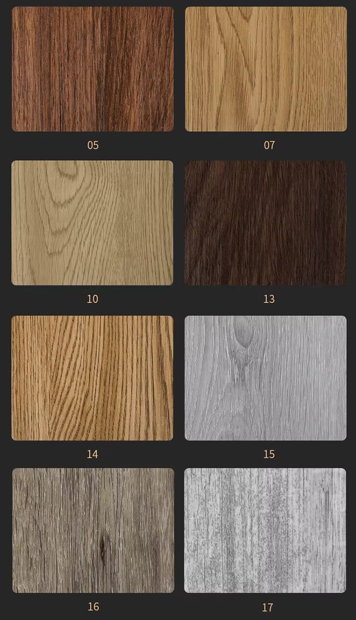 Material: Pulbere de rășină cu clorură de polivinil (PVC) pulbere de carbonat de calciu (CaCO₃ ) Strat rezistent la uzură (film UV/color)