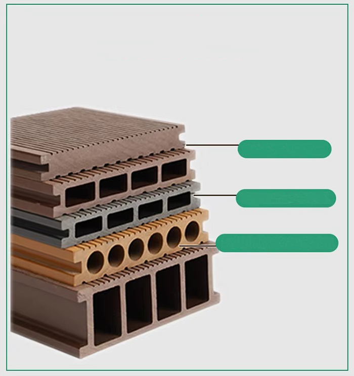 Amestecarea substratului Fibră de lemn (50-60%) Rășină PVC (30-40%) Strat anticoroziv din fibră de carbon (5-10%), adăugând hidroxid de aluminiu ignifug pentru a îmbunătăți calitatea A2.