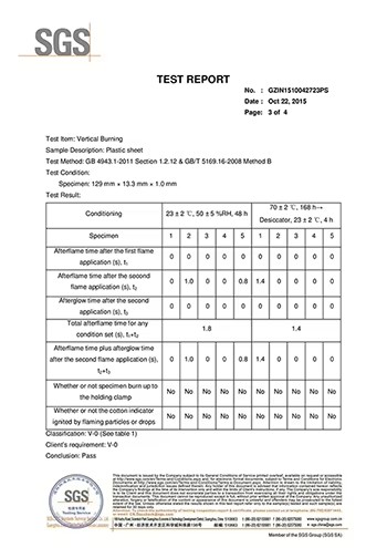 Test de foc: standard GB 8624, ignifug B1.Proces ecologic Adoptă o formulă ecologică fără plumb și cadmiu, iar sistemul de răcire cu apă în circulație în timpul procesului de producție reduce poluarea.